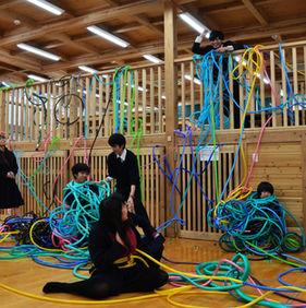 今回は、 ホースの特性である 「延長し、 繋いでいける」 ということに着眼点を置き作品にしました。